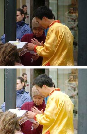 一般我们拍的照片并不是张张的尽人意,有时太暗了,被暗调藏住了很多细节,在这里我教大家怎样用PHOTOSHOP提高照片的质量,重现更多细节。当然在此之前不要把PHOTOSHOP当作什么高不可攀的难用软件,现在要教你的也仅仅是简单的三步,只用照猫画虎就行,希望同修们能有更多的照片揭露邪恶。
