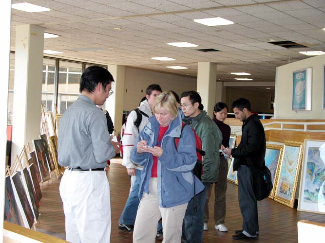 这次的画展,看的人很多。很多学生和教授都来看了画展。他们都从不理解迫害的始末到后来签了很多支持诉江的明信片。当地的人们很善良,他们对发生在中国的迫害情况很关心。很多人和法轮功学员们聊了很长时间。有5-6 家媒体来采访,都作了比较深入的了解。最初,很多媒体只把画展当成一个纪念性的画展,而没有想到迫害的严重性和它是正在发生的事实。与学员交谈过后,他们都停留下来,并做了详细的记录和采访。