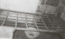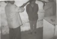 没过几天我们十几个炼功者,又被扒光脚穿很单衣服,三九天寒风刺骨,送到楼上冷冻(整个一层楼没有暖气玻璃,墙壁结着很厚的霜),把我们的双手向后背立直,头对着平行的脚成90度体罚“开飞机”。有的人蹶一会,饭都倒出来了,手臂直哆嗦,很难坚持的!手放下,犯人立刻就拿棍子打你的,蹶一上午下来,天旋地转的,脸都肿了。