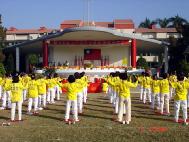 【明慧网2004年11月16日】台湾彰化县法轮功学员2004年11月12日受邀参加“员林农工第五十届全校运动大会”,并以五套功法表演为运动会揭开序幕。