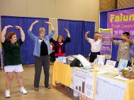 ![]() 法轮功展位 | ![]() 人们来到展位学功 | ![]() 人们在了解法轮功真象 |
