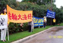 中驻美大使抵达城 法轮功学员要求法办江罗刘周(图)