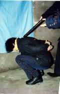 2001年2月3日晚,万家劳教所十二大队教导员祁凤芝,指使守卫队的男警将要炼功的大法弟子将嘴用胶带封住,双肩反绑到背后,强迫蹲在走廊里、库房里,不许上厕所。有的尿在了裤子里,又被拉到外面冻,一直迫害到2月4日晚9点多钟,致使我双脚、双腿肿胀成青紫色,很粗很硬,象裂开似的痛(因为我原本是伤腿,胫腓骨螺旋性骨折,腰椎曾取胯骨做过植骨术,修炼后都好了,没有任何后遗症),腰也痛。直到现在我的双下肢浮肿、麻木,蹲下时如手不扶东西起不来。(图片3)