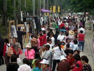 对面百货公司的逛街人潮,不断的往反酷刑展现场移动。只见学员一刻也不停歇,能说明白一个算一个,因为越多明白事实真象的人们发出正义之声,残酷的迫害也将提早一天被制止。