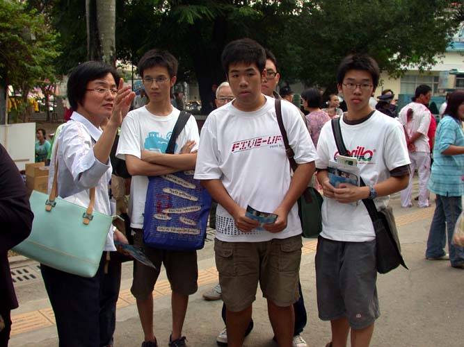 一位远从台北南下度假的小学男孩,认真的听过解说之后,跟学员要了资料,他说:“我要拿回台北告诉老师。”一位四、五岁的小男生,早上和奶奶在公园外接到传单,下午就要求奶奶带他来看。奶奶原本担心这种画面小孩会害怕,小男生却很大无畏的说:“不怕”。