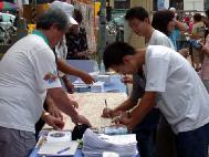 一位推着婴儿车的聋哑人士,仔细的看了所有的真人演示后满脸疑惑,她表示自己识字不多,所以展板上的说明看不全,于是现场的学员一字一句耐心的说给她“看”,就这样她靠着读唇语明白了真象。当她知道这个展示只此一天,相当懊恼,因为她想拍照却未带照相机,家住邻乡路程颇远。结果过了一个多小时后,她竟带着照相机出现在现场,一直到活动结束。
