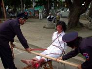 一位满身酒气的男士,不发一语的看着全场。学员上前与他交谈讲真象,只见他的神情由原本的微醺,到逐渐清醒。最后他说:“我去过福州,你们讲的情形我很清楚,确实是这样。”接着表示:“看了这个场景,我的心很痛。”