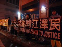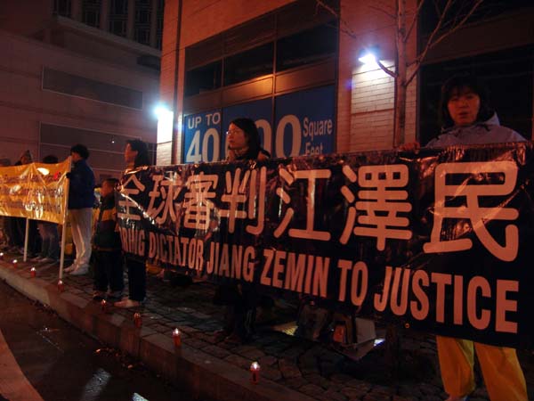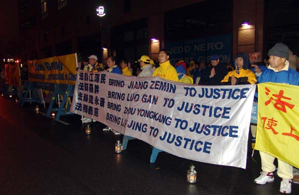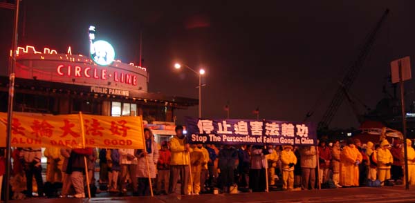 图片报道:法轮功学员冒雨在纽约中领馆烛光守夜(图)