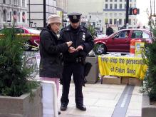 海外法轮功学员在纽约曼哈顿举行的反酷刑展已有几个月了,越来越多的曼哈顿人渐渐明白了真象。