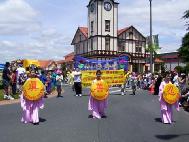 圣诞节即将到来,新西兰各个城市也陆续展开圣诞游行活动,2004年11月20日,新西兰法轮功学员首先参加了罗陀如阿一年一度的圣诞游行。