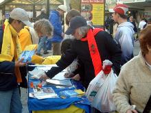 2004年11月13日星期六,来自伦敦、雪菲尔市、曼彻斯特市及林肯市的法轮功学员一起到雪菲尔市市中心洪扬法轮功以及揭露在中国的法轮功学员遭受迫害的真象。