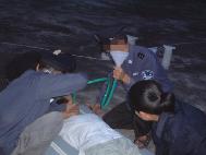 在第三次我被劫持至红桥区看守所时,是2000年11月,在那里,我以绝食表示抗议,在绝食七天后,我便出现呼吸困难,心跳过速,奄奄一息,女警怕出事,命犯人给我架到医务室,医生做了检查后说严重酸中毒,血压、瞳孔等都不正常。第二天他们命犯人把我弄去医院,强行输液,并且在医院给我造谣,说我是炼功炼的,我当时用尽仅有的力气指出他们的诡计,并对医生及护士讲述了红桥区看守所的黑暗。他们吓得赶紧把医生和护士推出,让大家别理我,并造谣说我炼功神经了。转天,他们便对我施行了野蛮灌食,灌食几天后便被第二次送往天津大港板桥女子劳教所進行2年劳教的迫害。以下是在天津市红桥区看守所对很多法轮功修炼者所用的野蛮灌食:(图2)