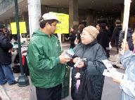 一位纽约人对法轮功学员说,如果每个人都关注法轮功,迫害一定会很快结束。你们做得很好,一定要坚持下去。