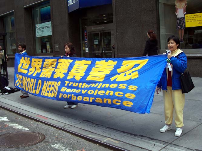 朱女士还说,曼哈顿是世界金融和贸易中心,在整个迫害过程中,江氏集团用了整个国家四分之一的财力进行迫害,而这些资金很大一部分来自海外的投资;这些投资公司等于间接的参与了这场迫害,却还被蒙在鼓里。他们也是被欺骗的对象,是受害者。世界需要真善忍,纽约受到过恐怖分子的袭击,更应该觉得真善忍的可贵。