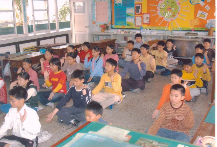 以下是班上黄琪雯的一篇修炼心得:“自从升上五年级后,我们新班导是陈金美老师,她是一位非常特别的班导,她告诉我们一种功法---法轮大法。在编到陈金美班导那班时,就觉得她与众不同,她介绍给我们一本书《转法轮》,他不是普通的书,听说这本书有些大人还看不懂呢!李洪志老师说小孩子最纯净,所以有很多炼功的小孩,就看得懂《转法轮》这本书,由于这是法,所以每读一次,就会有不同的体悟,那是因为层次在提升。