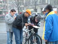 2004年11月21日,法轮功学员在英国布里斯托尔(Bristol)城市的市中心展示功法和真象展板,并向过往路人讲发生在中国的迫害真象。