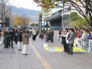 定于2004年11月18日至23日正式访问韩国的中国前教育部长,现国务委员陈至立,继18日被韩国学员以群体灭绝罪嫌疑控告到汉城中央地方检查厅之后,20日学员们又召开了揭露陈至立罪状的记者会见活动,学员们在中国大使馆和领事馆前用中文和韩文朗读了声明书。