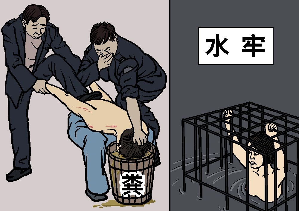 法轮功的修炼者历尽九死一生记录下施加在他们身上的超过百种酷刑,以下仅举几例: