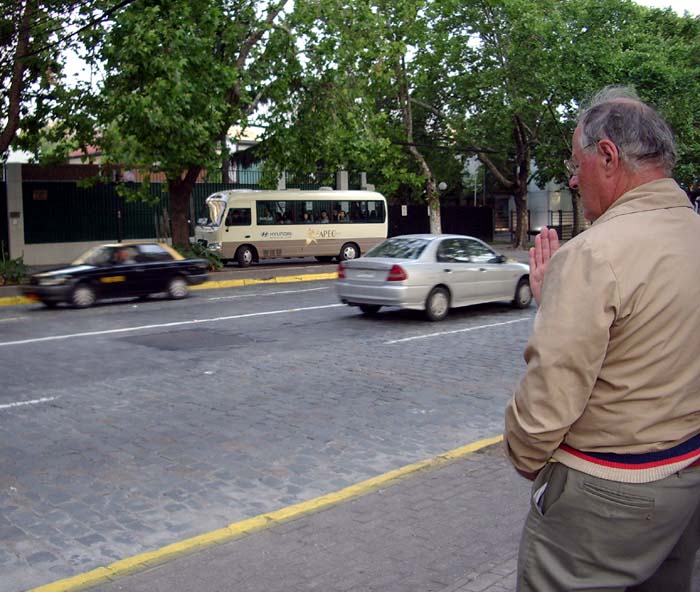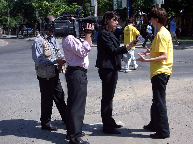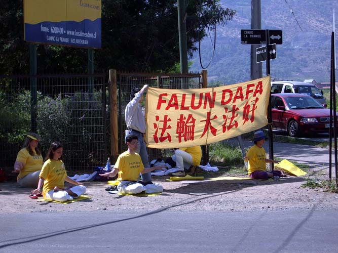 APEC各国首脑峰会在Espacio Riesco举行,远离圣地亚哥金融中心。但学员们仍然赶到那里,并在会场必经的两个入口处附近示范法轮功功法,派发真象资料。多家电视台和报社等媒体对法轮功学员的活动進行了采访报道。