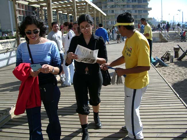 学员们还在附近的海滨市Vi del Mar洪法,向当地市民和游客派发真象资料。许多人看到我们的功法展示后学了功法动作。