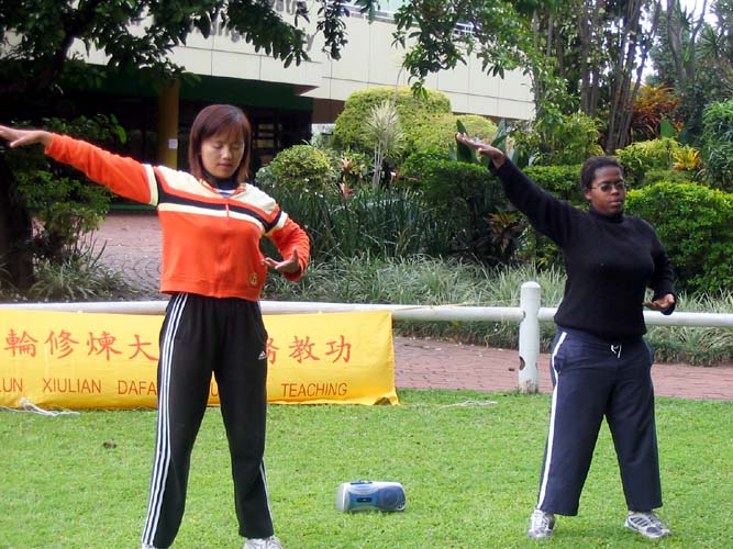 会计系二年级学生娜姆悉-昆尼恩(Namshe Kunene)在参加了两次法轮功学习班后说:“我太喜爱法轮功了。炼完功后你会感到非常放松,简直就象飘在空中一样。”