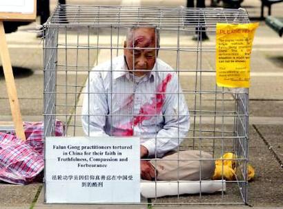 路透社图片报道法轮功学员在悉尼的酷刑展