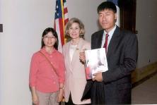 ![]() 参议员Hutchison(中)和法轮功学员合影 |