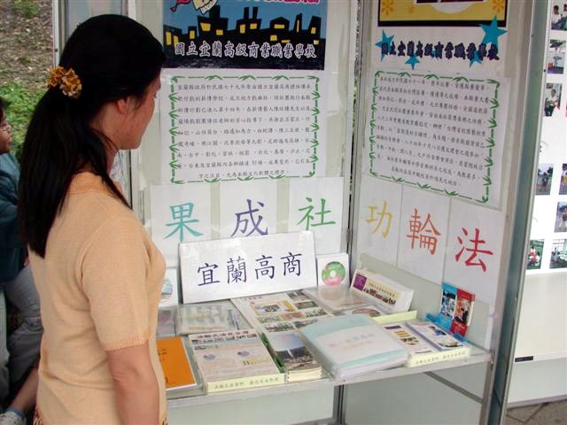 【明慧网2004年11月9日】2004年11月6日,“台湾宜兰县高中社团博览会”在罗东镇中山公园广场举行。宜兰高商及罗东高工两所国立高中,以显著的展板篇幅,呈现各校法轮功社团蓬勃发展的情况。