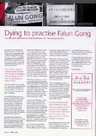 英国爱丁堡杂志《桥》在2004年第7期刊登题为“因修炼法轮功被虐杀”的文章,文章介绍了法轮功修炼使人身心升华,并且传到60个国家。