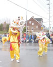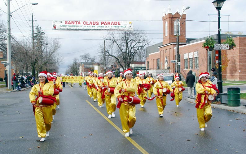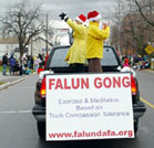 当天的天气寒冷,北风呼啸,还下起了冰雨。但观众仍然热情高昂。法轮功学员的队伍阵容庞大,有功法表演、舞狮队、腰鼓队和舞扇队。观众不停的向学员们鼓掌和挥手欢呼。一位每年都来观看游行的中国观众说:“法轮功的队伍阵容一年比一年大,花样也一年比一年多。”维持治安的警察微笑着竖起大拇指并告诉学员:法轮功的游行团队是所有参与团队中最棒的!