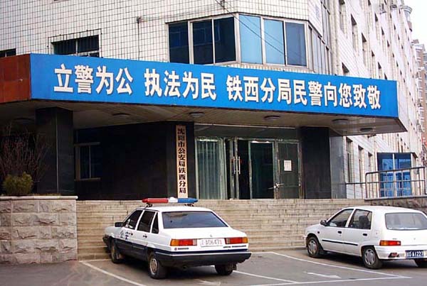 铁西区公安分局楼门上挂着一块“立警为公、执法为民,铁西分局民警向您致敬”的标牌,面对被酷刑折磨、被迫害致死、被非法关押的法轮功修炼者和被拆散的家庭,铁西区的“人民警察”们,你们如此“为公、为民”,对得起自己的良心吗?