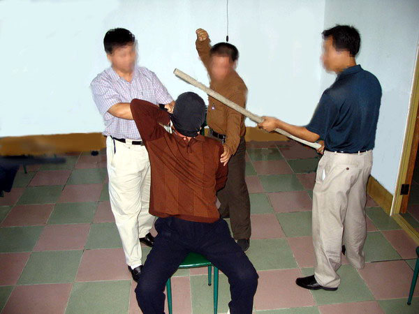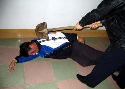 2001年5月,在吉林省辽源劳教所非法关押期间,我被强制出工,挖地缆线沟。在辽宁省昌图县、新沙河挖沟时,劳教所恶警利用刑事犯张××用铁锹砍我,当时我被连砍4锹,第二锹就将我砍倒。我的左腿关节处被砍骨折,我的裤子被砍到身体长脓包的烂肉里去,我失去了知觉、昏过去。当时在场的人有的犯人被这种非人狠毒的毒打吓得闭上了眼睛不敢看,有的求他们不要打了,有的流下了泪水。恶警、恶人们的目地就是要逼我放弃修炼大法,并威胁我说打死就地埋沟里,劳教所有死亡指标,上边让干的。(演示图2、3、4)