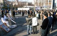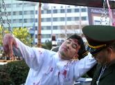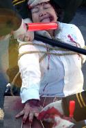 酷刑展一开始,周围就有许多人围了过来。一位外国人过来照了很多照片。学员的演技非常逼真,许多市民专心致志的观看酷刑展 ,他们的视线都为法轮功学员遭恶警拷问的场面所牵动 。
