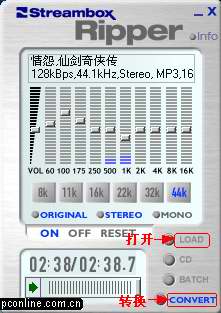 经过多方测试,强烈推荐使用Streambox Ripper 2.009进行音乐转换,效果最好,而且使用方便,可以批处理。我曾经把讲课的大批量内容(rm格式的)用它全部转换成mp3,而且在压缩比很高的情况下音质还非常满意,我比较过许多其他同类软件,最好的还是它。