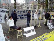 ![]() 荷兰海牙议会大楼前反酷刑展 | ![]() 比利时布鲁塞尔市的反迫害酷刑展 |