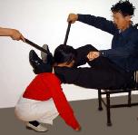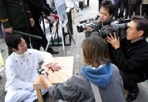 ![]() 媒体采访演示吊刑的学员(台湾) | ![]() 韩国学员演示“竹签穿指甲” |