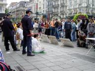 ![]() 法轮功学员遗孤刘晓天丹麦演示酷刑 | ![]() 围观的人群(丹麦) |