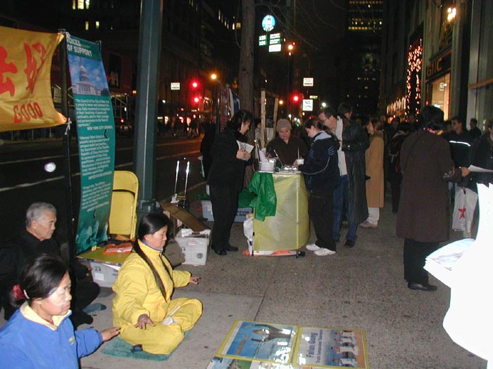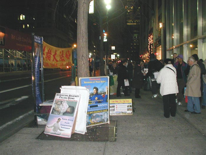 曼哈顿的冬天夜幕降临很早,同修们依旧在酷刑展点上忙着讲真象,……