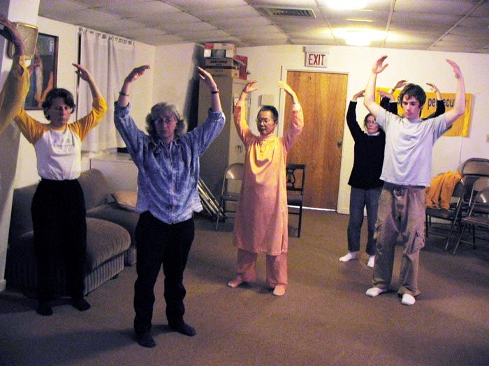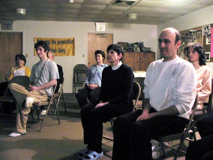 学员们在中心张贴了海报,并给居住在瑜伽中心每一个人的信箱中投放了一份活动广告。当晚,该中心有十几个人参加了讲座。其中包括两名中心的重要成员。在观看了8分钟的法轮功介绍录像后,大家一起随着师父的教功录像学炼五套功法。最后,弗吉尼亚大学的一位中国学员结合个人的修炼体会,和在这场镇压中所遭受到的种种迫害,做了题为“法轮功--被中国政府镇压的和平修炼功法”的专题报告,概括性的介绍了什么是法轮功,为什么中共和江泽民镇压法轮功、镇压的手段和后果,及为什么每个人都应关注等。在报告后,大家提了许多问题,其中一位女士详细的询问了她能做些什么来帮助法轮功。