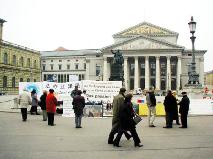 2004年12月10日是国际人权日,国际人权组织慕尼黑分部和法轮功弟子在德国慕尼黑王宫和国家剧院的广场前共同举行了活动,呼吁德国社会对中国的人权问题给予关注,呼吁中国政府停止对人权的迫害。