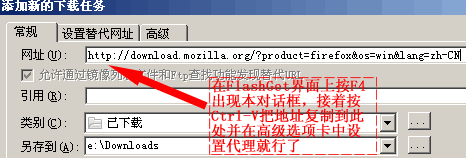(4) Firefox 也可以下载,但麻烦一点,右击下载项目后“复制链接地址”,再到下载工具中新建下载项目,并设置好下载工具代理,就行了。