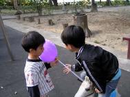 小弟子将汽球送给小朋友告诉他法轮大法好