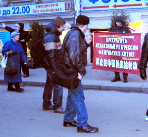 为了早日停止这场有害于人类的迫害,俄罗斯的法轮功学员借世界人权日之际,在市中心的地铁出口处集会,呼吁停止在中国对法轮功学员的迫害。