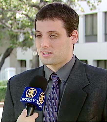六名原告之一的帕莫纳学院学生林理善(Leeshai Lemish)接受新唐人电视台采访