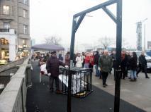 获悉2004年11月11日至27日将在德国汉堡举行经济会议的消息,法轮功学员们即刻决定在会议地点附近——市政厅的Ida Ehre Place和The Reesendamm Bridge组织一场反酷刑展,以模拟表演的方式揭露中共江氏集团用来强迫法轮功学员放弃信仰的酷刑。