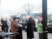 一位年长的女士停下来看展览,她很诚恳的说,“向全世界展示共产党干的所有恐怖事情,真是太好了!”她认为中共所干的这一切完全出自于妒嫉,她也告诉学员们她在一个波兰的劳改营中也因为类似的原因而受到过酷刑折磨,她经常做恶梦以及想起她以前所承受的酷刑,她衷心的希望中国的法轮功学员能很快的从苦难中被解救出来。她也签了请愿信,并给学员们最好的祝愿。