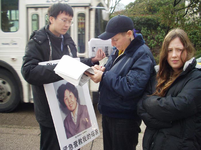 。这次活动以营救法轮功学员在中国的遗孤为主题征签和讲真象,沉浸在迎圣诞气氛中的人们似乎对法轮功学员在中国遭受的迫害有了更多的理解,纷纷驻足了解真象和签名,呼吁加拿大政府出面阻止迫害,敦促加拿大总理马丁在明年一月访华时,特别关注法轮功受迫害问题。