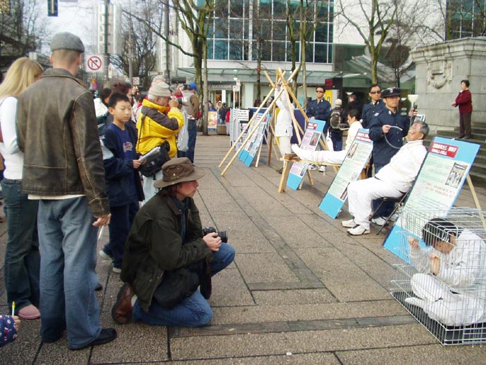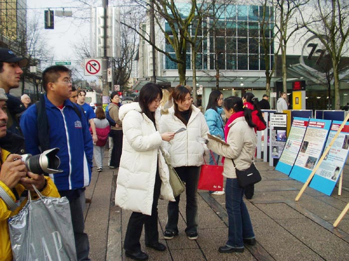 【明慧网2004年12月20日】(明慧记者李华温哥华报道)2004年12月18日,加拿大温哥华法轮功学员在市中心艺术馆前再次举办