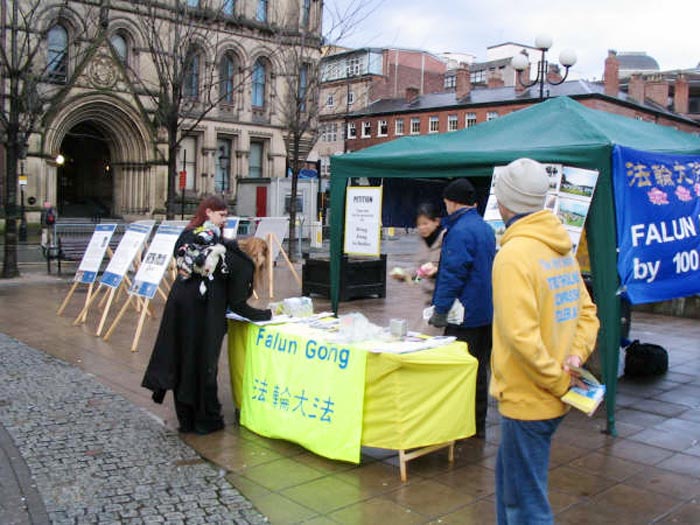 【明慧网2004年12月20日】2004年12月18日,来自英国曼城及周边地区的部分法轮功学员在曼彻斯特市政府大楼前面的和平花园(Peace Garden)内向公众展示了中国大陆被酷刑折磨的法轮功学员的照片和图片,向过往行人讲述中共江氏集团镇压法轮功的真象。