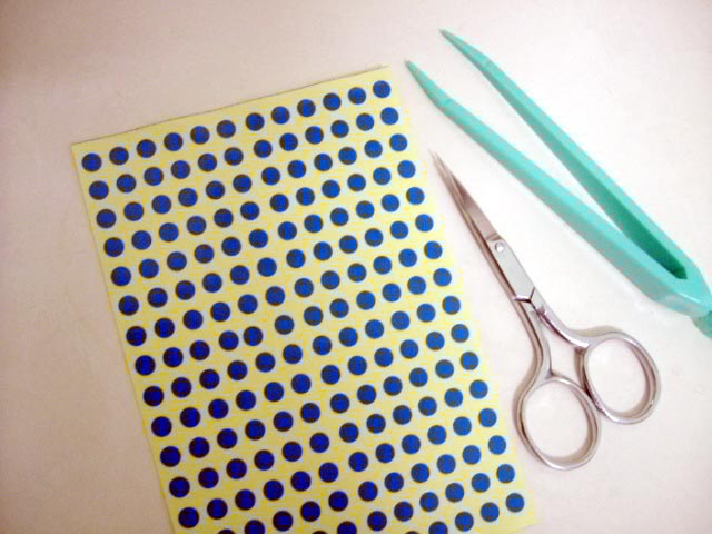 曾考虑过用颜色纸影印,可是找不到适合的颜色纸。这种小圆贴纸颜色略深于页面的颜色,大本或小本的书都适用。一包贴纸约1536枚,价钱约台币20-25元一包。